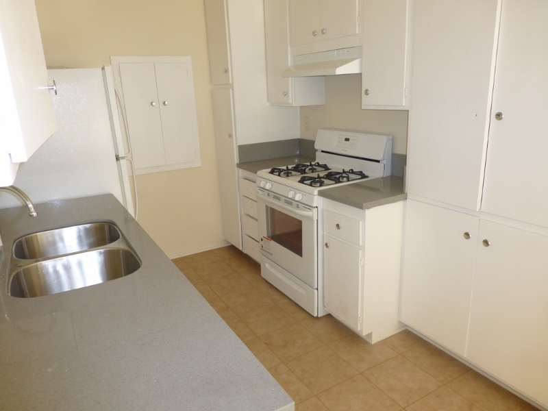 This updated lower unit comes with  quartz  kitchen counter tops, gas stove, fridge & dishwasher,  lots of cabinets, large windows, blinds, ceiling fan in dining area, Laminate wood and tile flooring, shared on-site laundry room, indoor cat okay,  one assigned parking space, comes with private patio, gated entry, close to shops & restaurants, bus line, and freeway, and much more, Renters Insurance Required