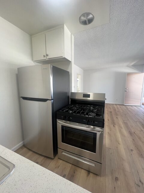 This upper newly remodeled one bedroom apart ready to move in! Freshly painted unit, that comes with full kitchen and new stainless steel appliances gas stove & fridge, new ceiling fan in dining area, new blinds throughout, new plank flooring throughout. Everything is new! All utilities included, non-smoking unit & building, shared on-site laundry room, intercom-entry, gated assigned parking space in back, no pets. Easy walking to public transit, beaches and close to the freeway and much more. Also there’s a bike path in front of the building.