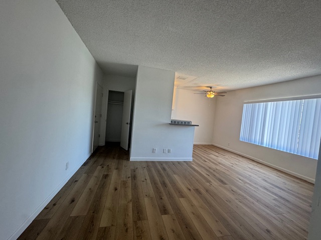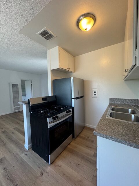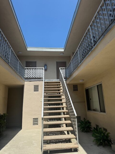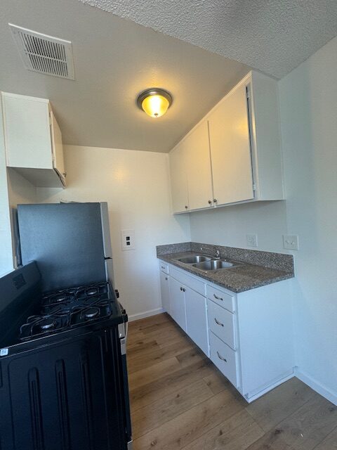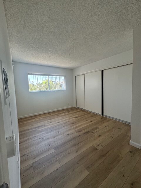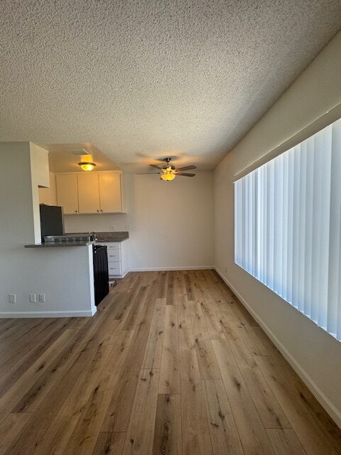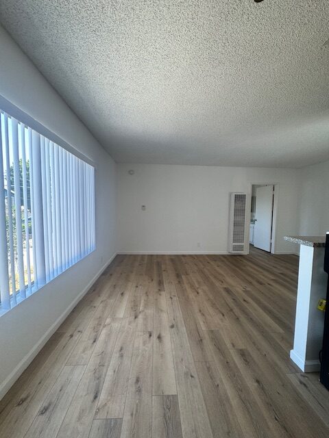 This upper unit comes with granite kitchen counter tops, stainless steel gas stove & fridge, lots of cabinets, large window, blinds, ceiling fan w/ remote in dining area, plank flooring throughout, owner pays all utilities water/gas/trash & electric, non-smoking unit & building, shared on-site laundry room, intercom-entry, one assigned gated parking space, no pets, close to the beach, freeway and much more. Renters Insurance is Required.