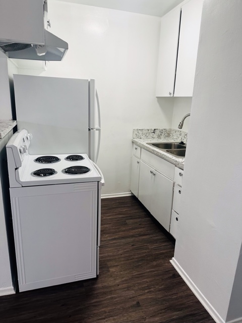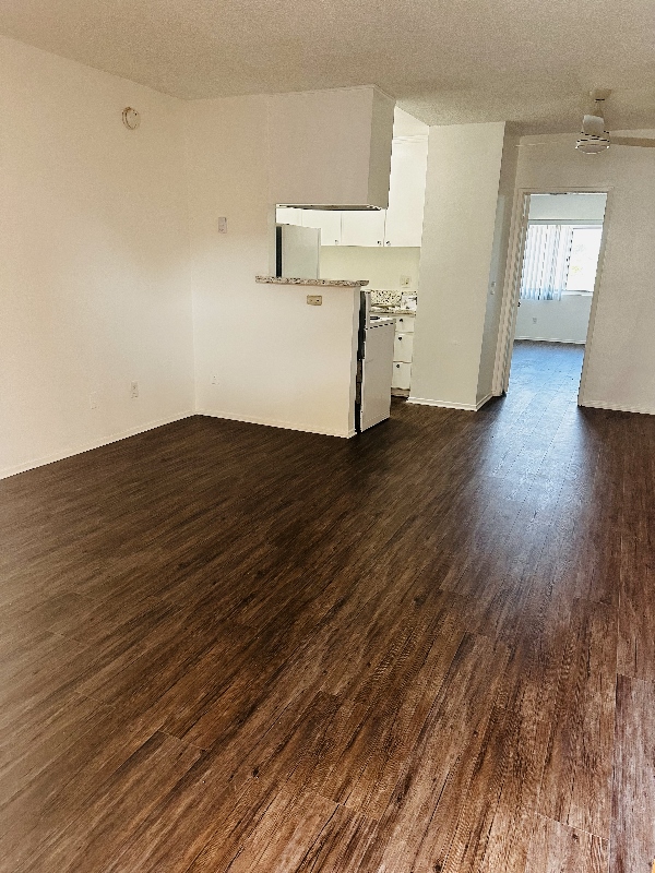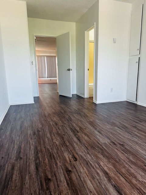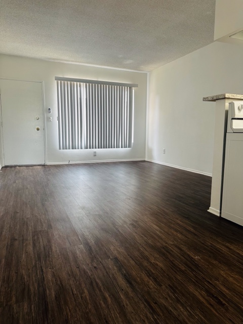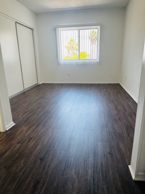 This upper unit with utilities included, this unit comes with granite kitchen counter tops, electric stove, fridge, lots of cabinets, large windows, new blinds, new ceiling fan w/remote, new plank flooring throughout, shared on-site laundry room, non-smoking unit & building, intercom-entry, gated assigned parking space, close shops & freeway. Renter’s Insurance Required. Move-In Special with asking price only.