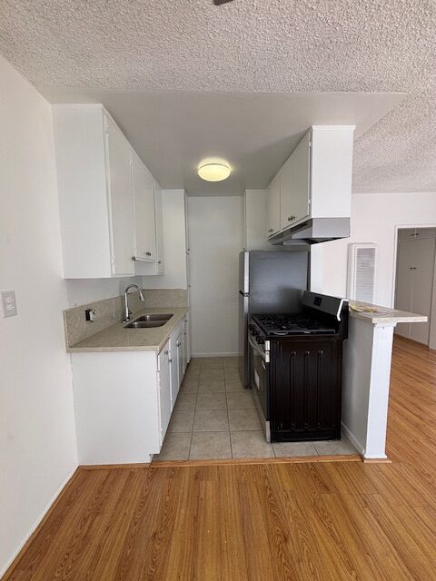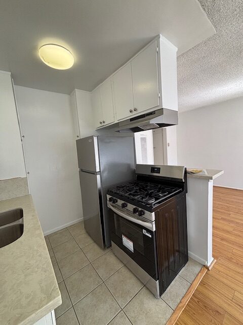 This updated upper front unit comes with new quartz kitchen counter tops, new stainless steel gas stove & fridge, lots of cabinets, large windows, new blinds, new ceiling fans, plank flooring in dining area, living room & hallway, with tile floors in kitchen & bathroom, new carpet in bedroom, non-smoking unit & building, indoor cat okay, shared on-site laundry room, 1 car assigned parking space,  close to shops & Farmers Market every Sunday at Venice Blvd & Grandview Blvd, good food, fresh veggies, and much more, come see and enjoy. Owner pays water & sewer, tenant pays gas, electric and trash, 1 year lease. Calling hours are 5:30pm to 7:30pm, viewing by appt only. Renters Insurance Required