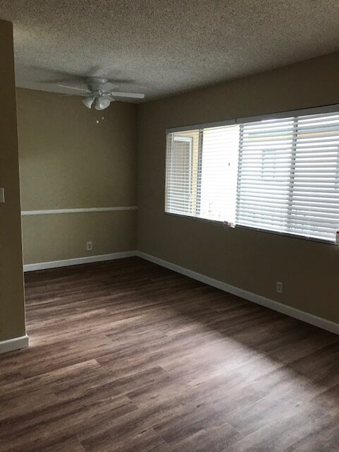This bright upper unit that comes with full kitchen: white gas stove, fridge, ceiling fan in dining area, tile counter tops, laminate wood flooring throughout, blinds, lots of closet & storage space, non-smoking unit & building, shared on-site laundry room, indoor cat ok or small dog 25lbs or less, assigned covered parking space. Close to the beach, restaurants, coffee shops and much more. Renter’s Insurance Required.